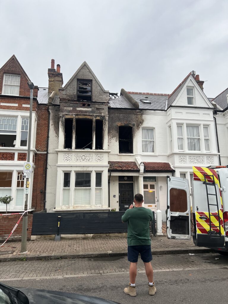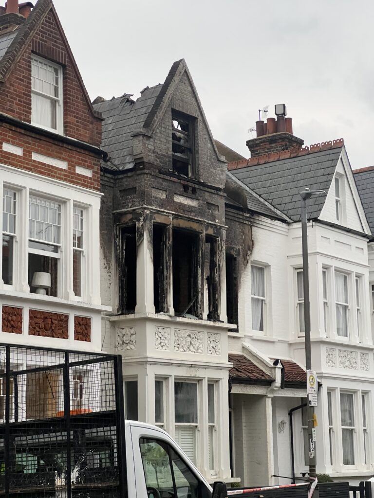 The London Fire Brigade issued a statement on social media at 3:26pm confirming the incident and asking the public to avoid the area. By early evening, as drizzle began to fall, the fire was entirely out; a council worker was sweeping up broken glass at the front and exhausted firefighters were relaxing by their truck. The road was still closed to traffic at 9pm.