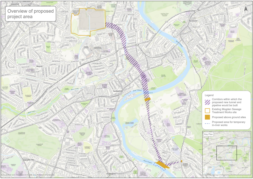 The TDRA scheme would allow Thames Water to extract up to 75 million litres of water per day from the Thames just upstream of Teddington Lock during future droughts. That water would then be replaced with treated sewage effluent from Mogden Sewage Treatment Works. The two points would be linked by a new 4.2-kilometre underground tunnel, running beneath homes, parks and schools in Twickenham, Teddington, Ham and Kingston.