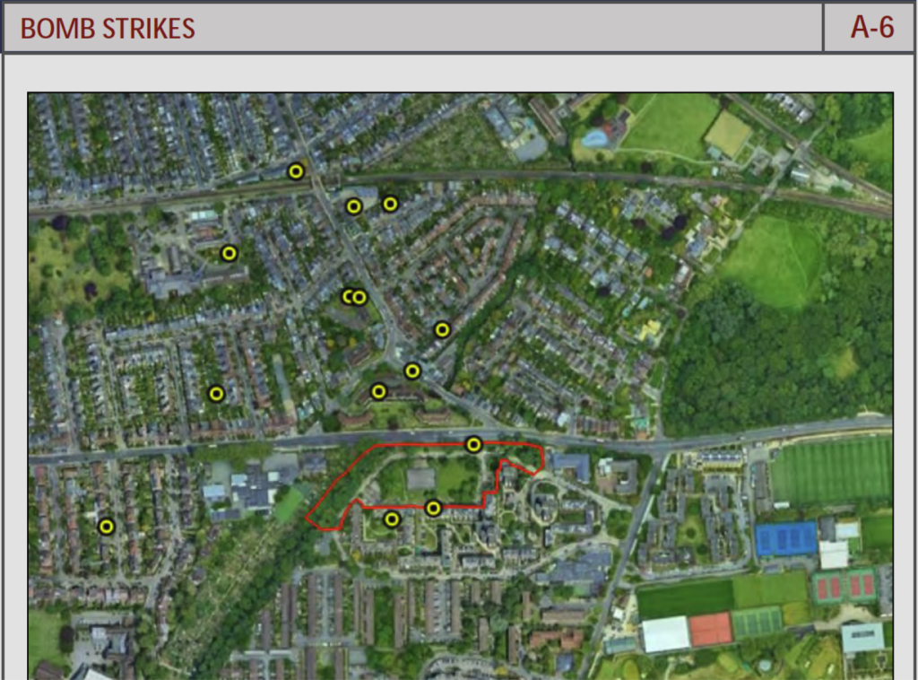 The land was open and undeveloped during the 1940s. The specialists’ report notes that “during any bombing raids the anticipated levels of access and observation will have dropped significantly and it is unlikely any bombs on the site will have been noticed and recorded.”