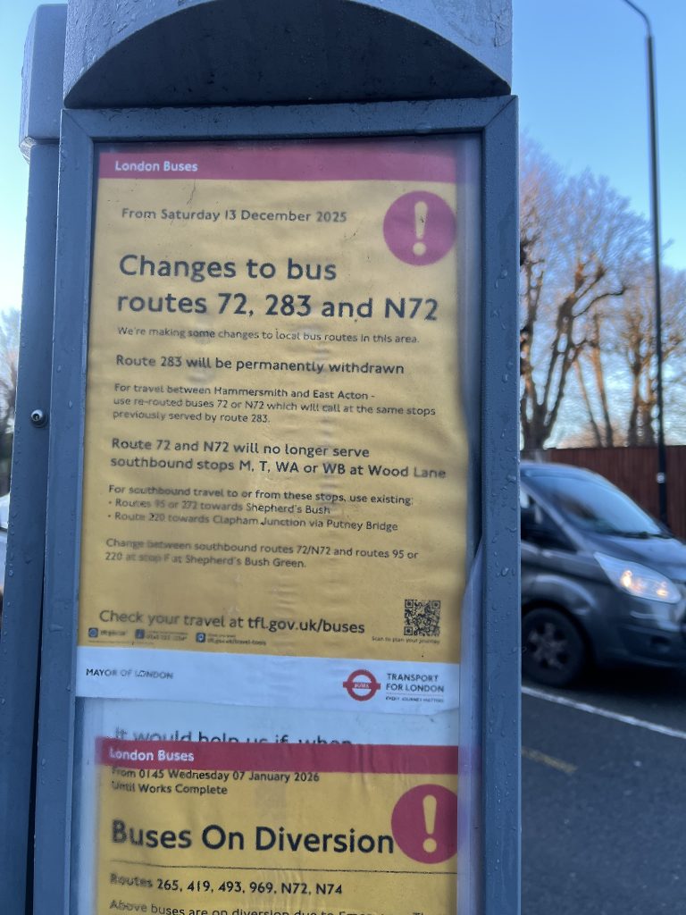 The diversions mean buses are not serving stops between Rosslyn Park Rugby Football Club and Roehampton Lane/Danebury Avenue, affecting commuters travelling to Roehampton University, Queen Mary’s Hospital and the Alton Estate.