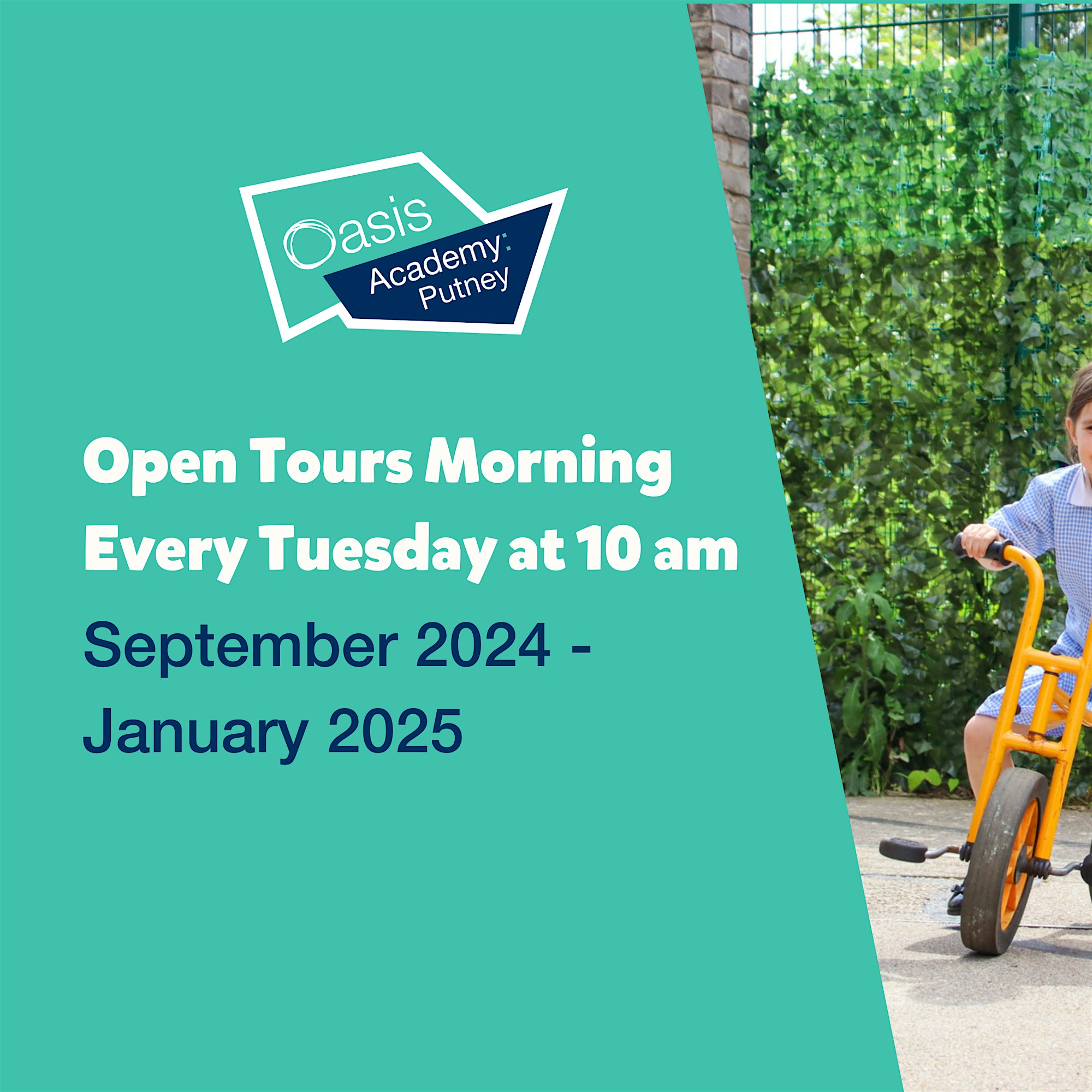 Discover Oasis Academy Putney! Join our Open Tours every Tuesday at 10 am from 10th September 2024